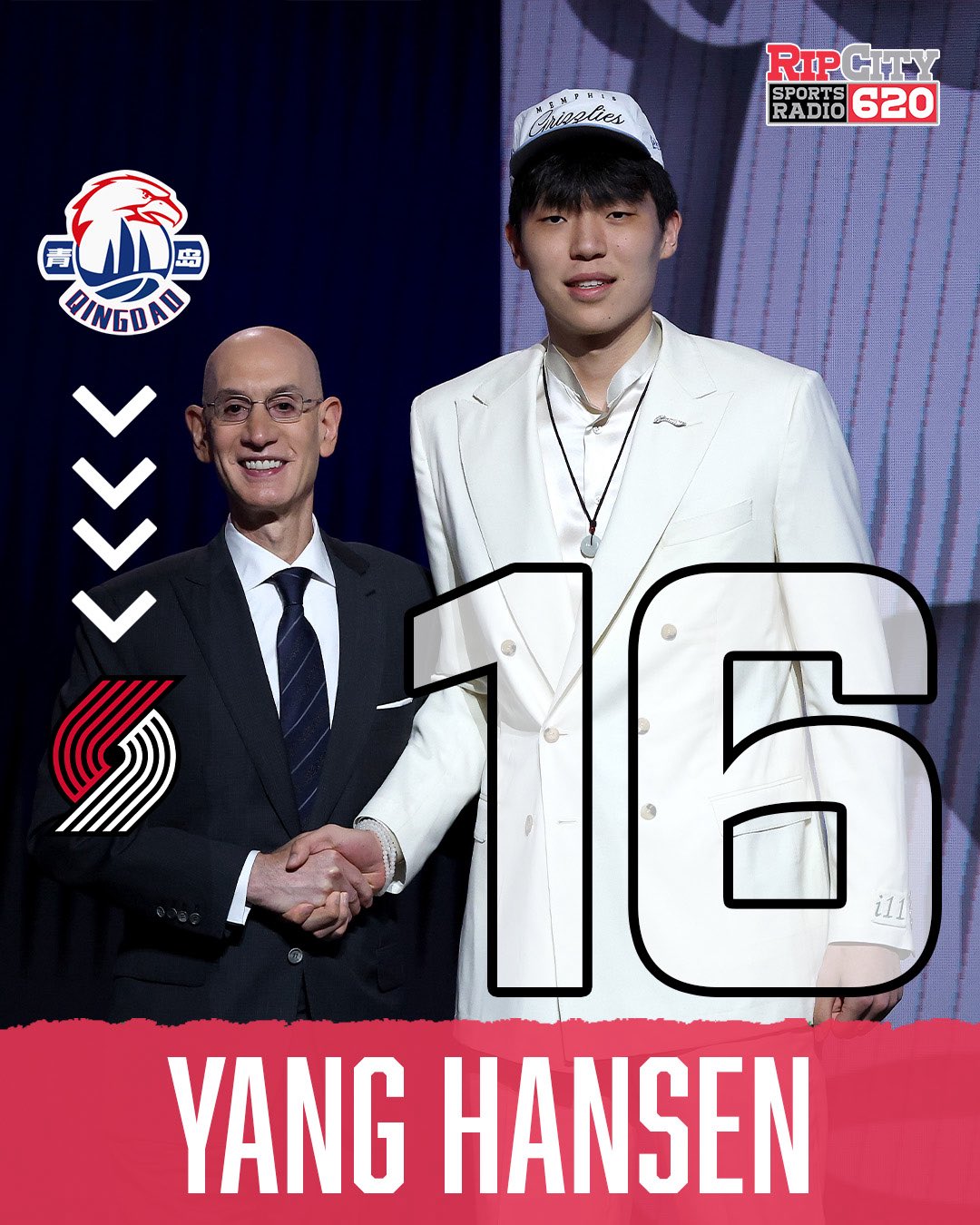 虎扑06月26日讯 2025年的NBA选秀大会中大圣策略,开拓者用16号签选中了来自中国的中锋杨瀚森。