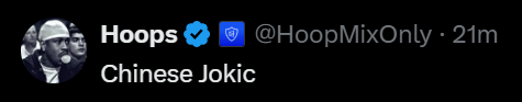 美媒Hoops评价道:“中国约基奇!”